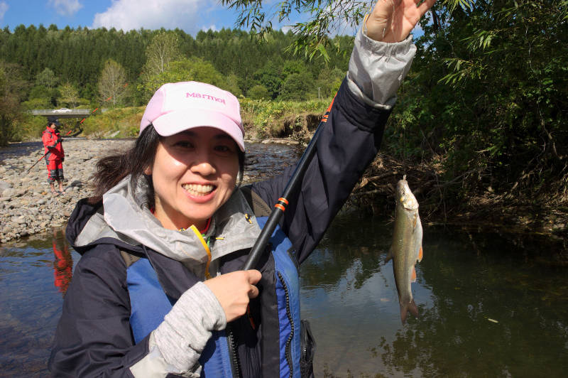 ・この場所では釣りも楽しむことができ、なんと参加者全員がヤマメを釣りました。中にはウグイを釣った人も!すごい!